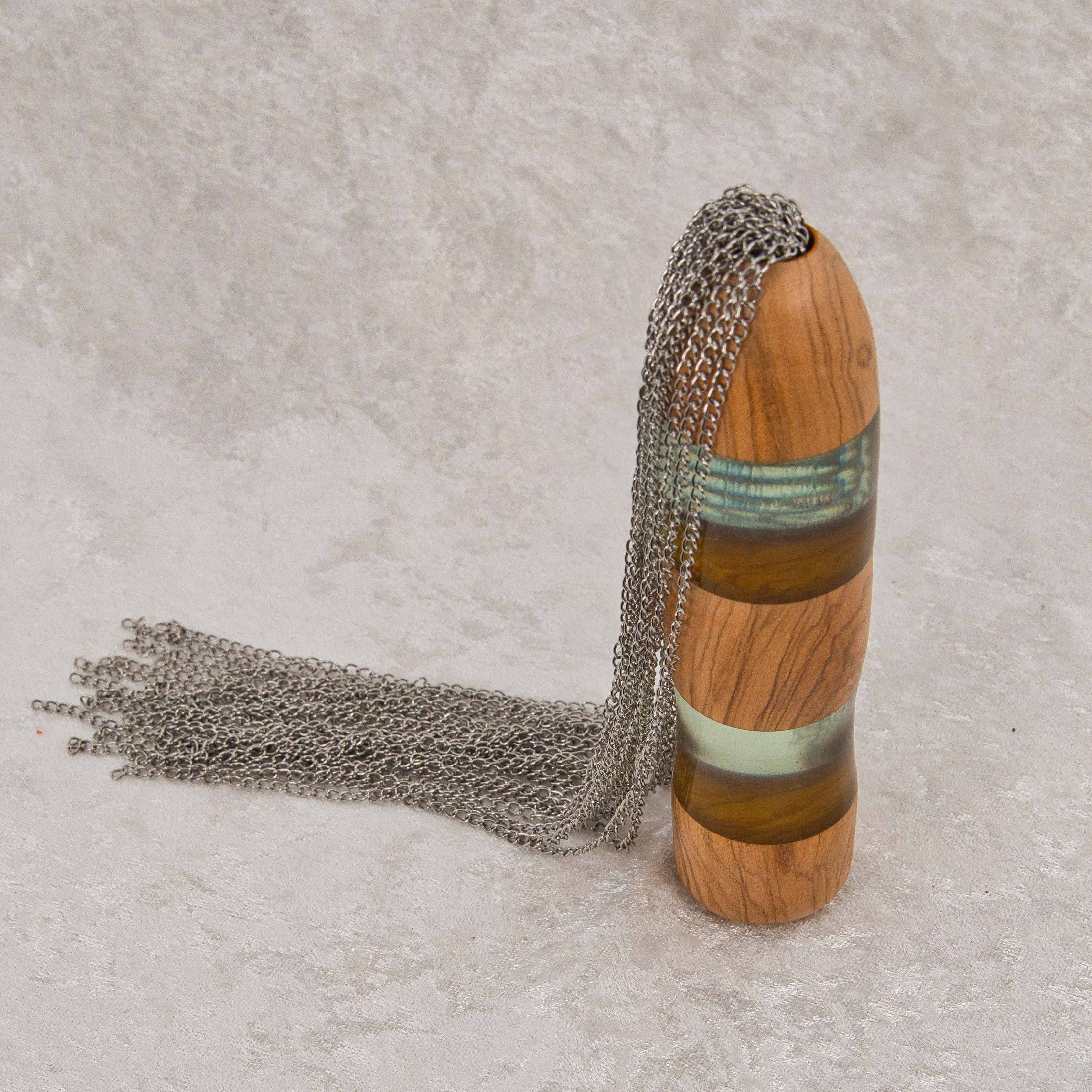 Das Zusammenspiel aus massiven Edelstahlketten und dem kunstvoll gestalteten Griff ergibt ein ästhetisches, langlebiges Tool, das gleichermaßen optisch beeindruckt und funktional überzeugt. Die harmonische Verbindung natürlicher Materialien mit modernem Bio-Epoxidharz macht dieses Modell zu einem hochwertigen Begleiter für anspruchsvolle Anwenderinnen und Anwender.