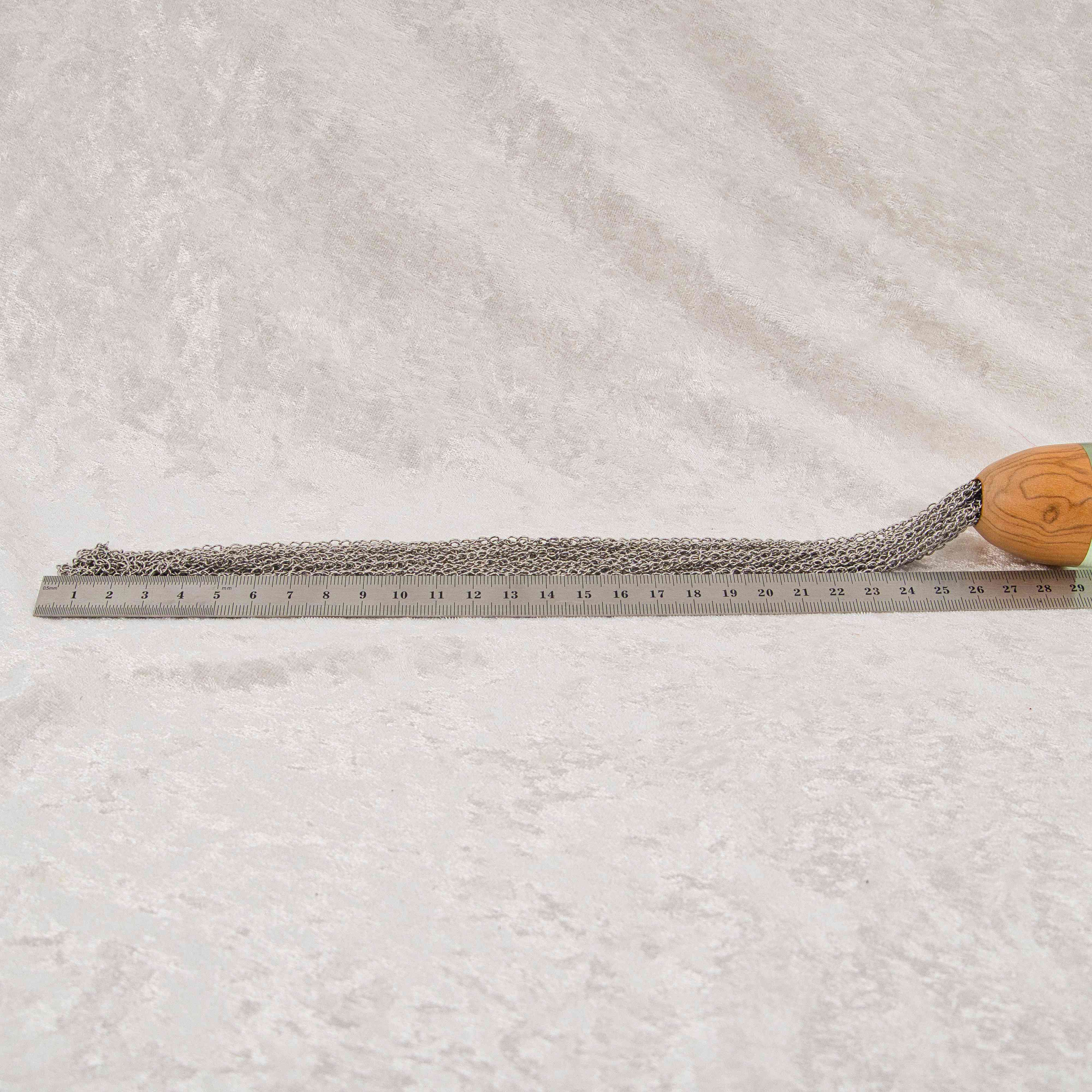 Der Kettenflogger verfügt über flexible Edelstahlketten mit einer Länge von ca. 27 cm. Edelstahl ist besonders robust, rostfrei und bietet ein angenehmes Gewicht, das für eine tiefe, präzise Wirkung sorgt. Die Intensität lässt sich mühelos steuern – von einem sanften, kühlen Kettenflüstern bis hin zu kraftvolleren Impulsen. Der 14,5 cm lange Griff aus Olivenholz liegt durch seine ergonomische Form optimal in der Hand und verleiht dem Toy eine edle, natürliche Optik. Die integrierten Epoxidharz-Elemente setzen moderne Akzente und machen jedes Stück zu einem Unikat.